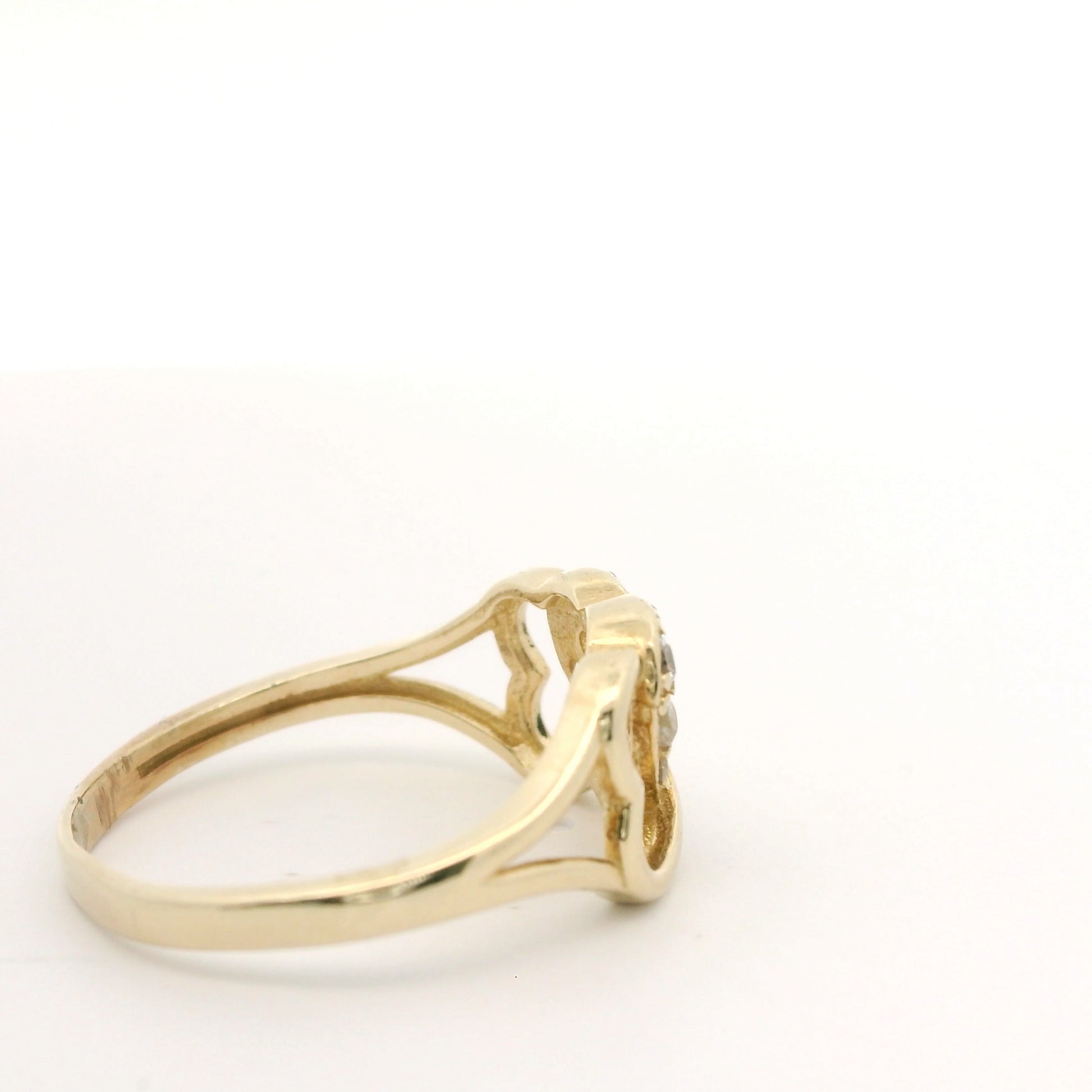 10K Yellow Gold | 2.1 Grams | Stones: Clear Stones (not diamonds, likely cubic zirconia, white topaz, glass, plastic, etc.) | Size: 7