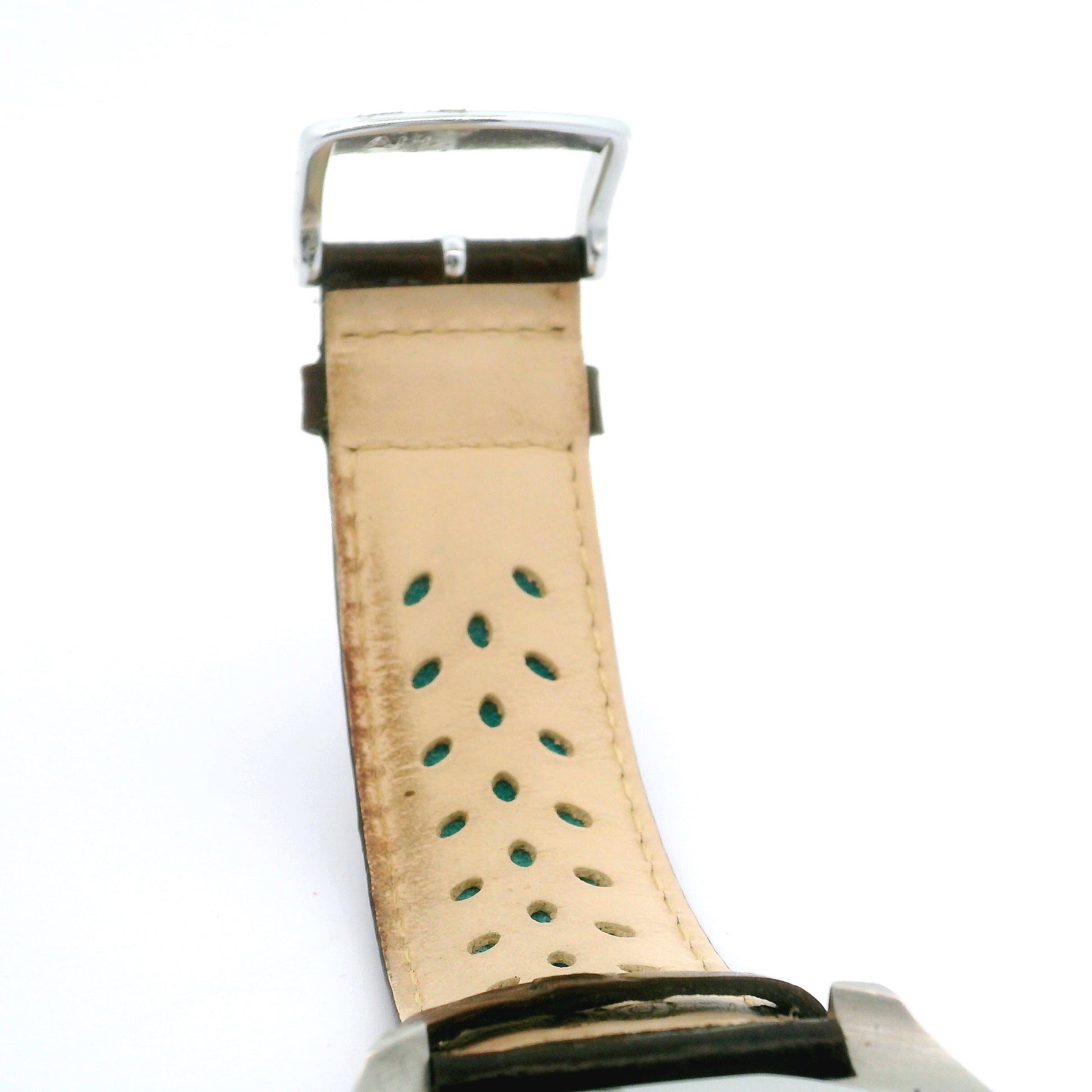 Things To Notice: Aftermarket leather band, shows signs of wear. Runs well. Selling as is