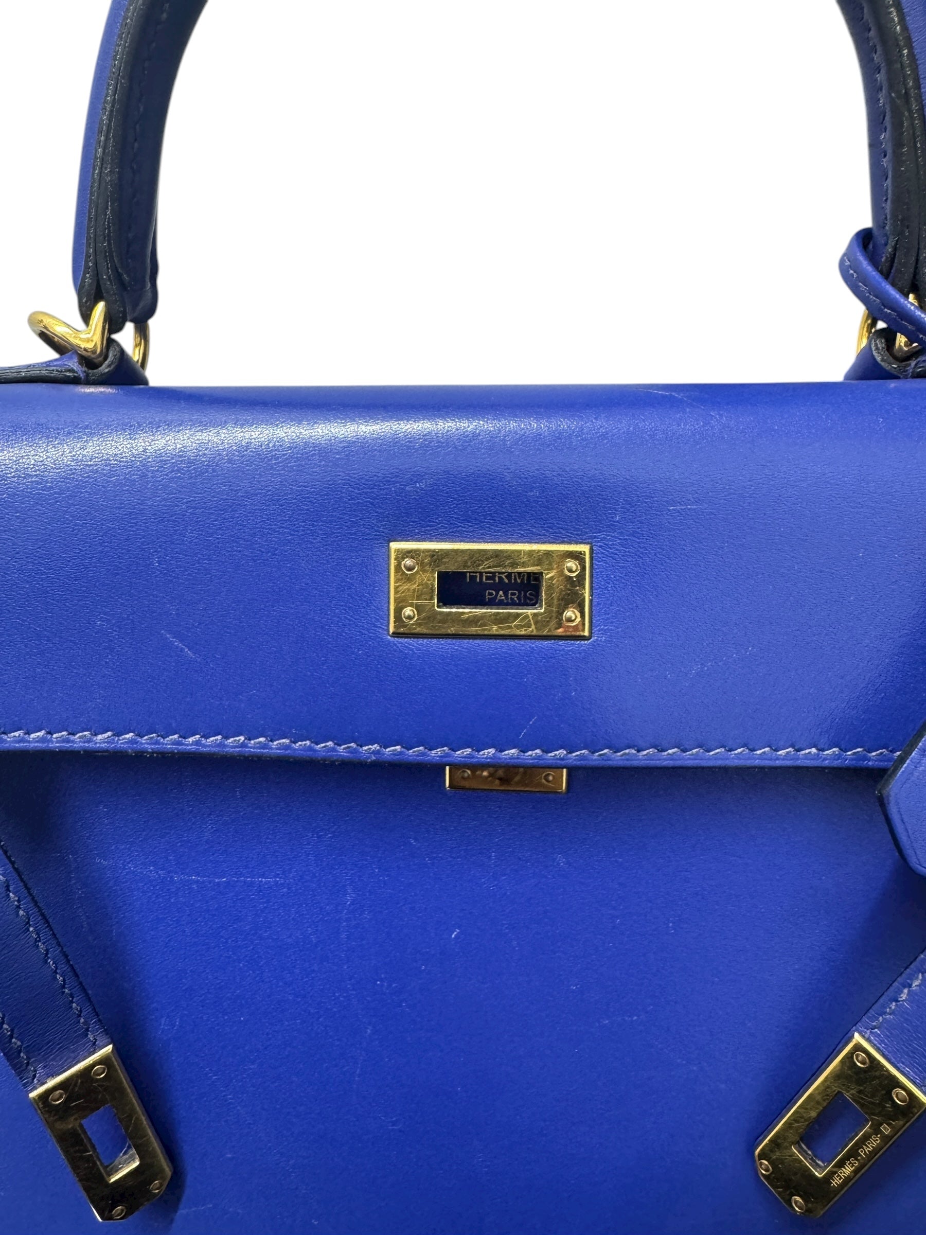 Authentic Hermès Kelly Sellier 25 in Bleu Electric with Gold Hardware 0251097