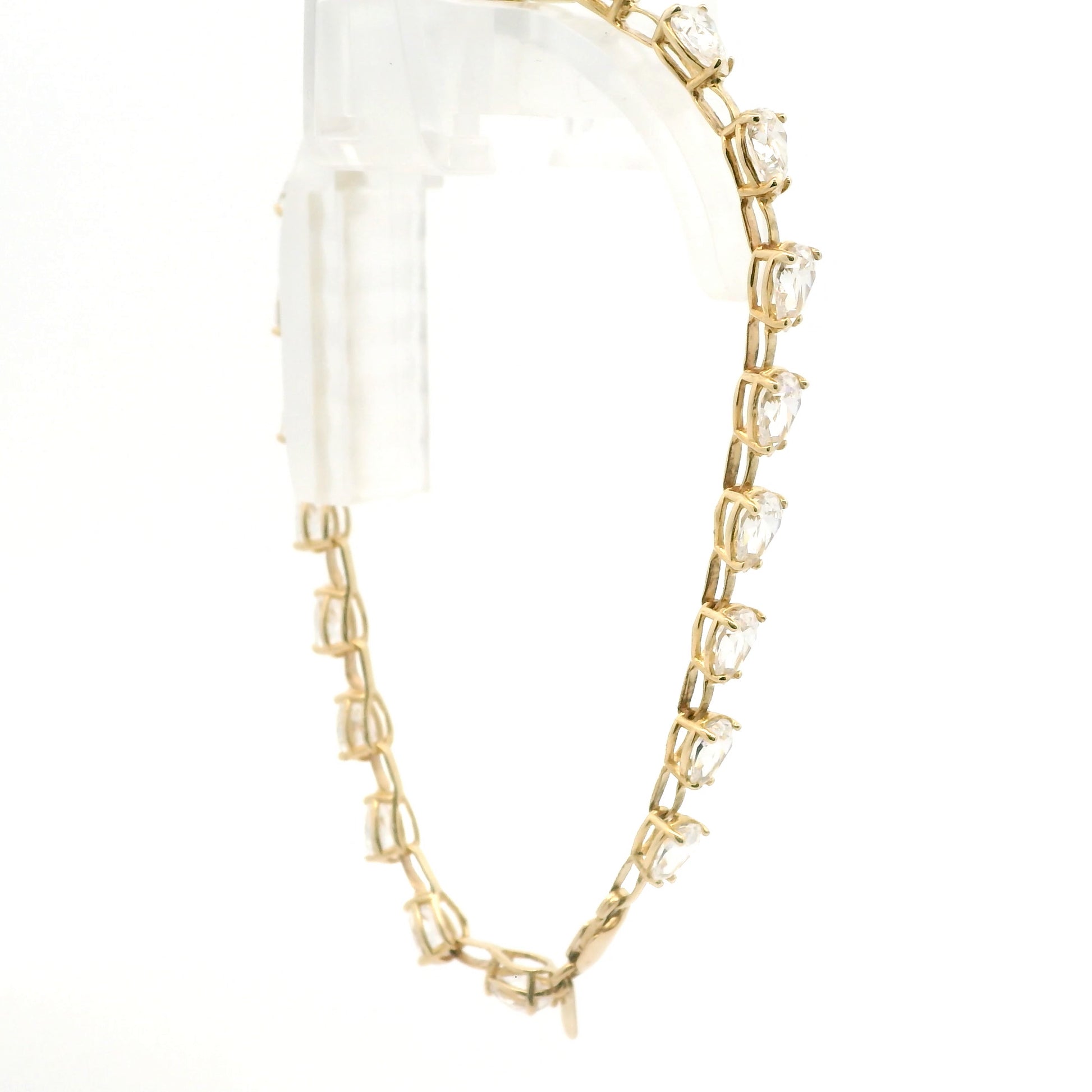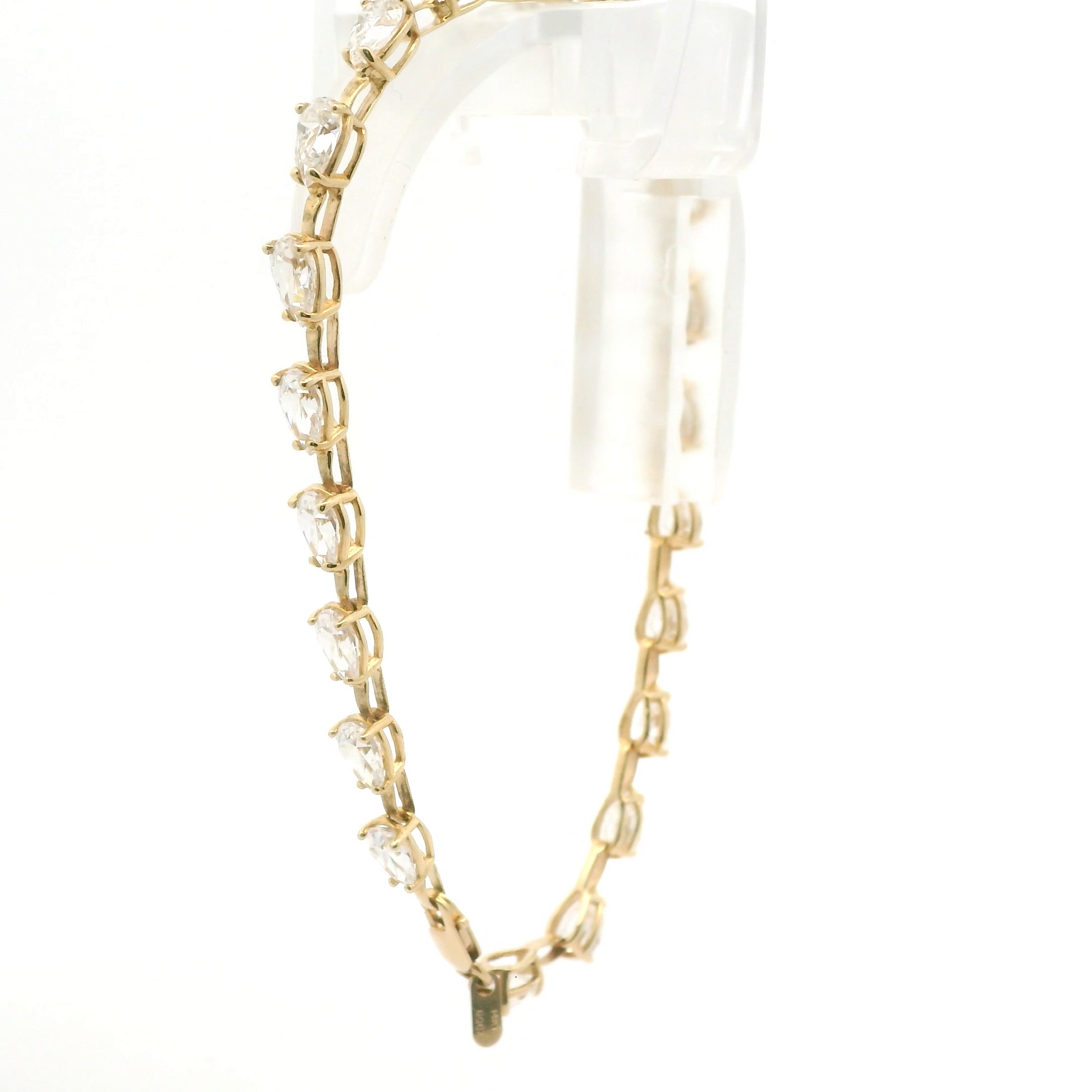 14K Yellow Gold | 7.3 Grams | Stones: Clear Stones (not diamonds, likely cubic zirconia, white topaz, glass, plastic, etc.) | Size: ~7.5